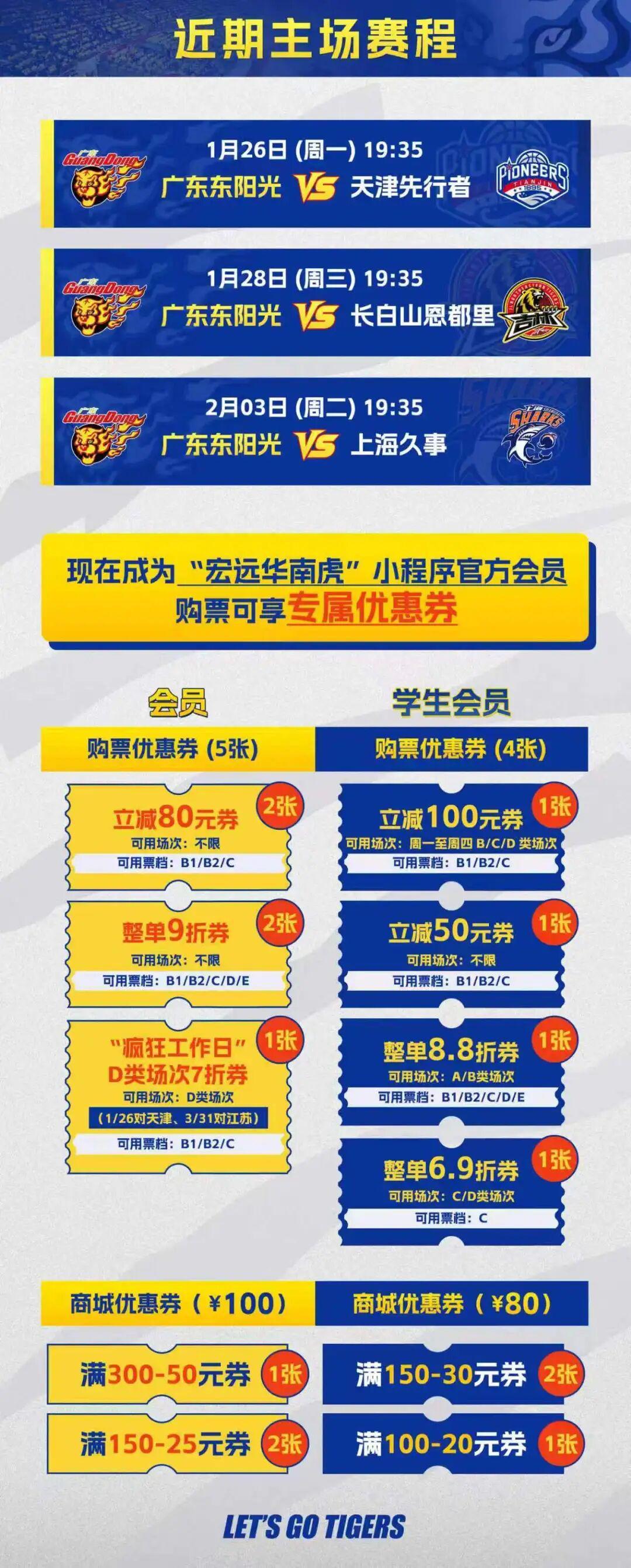 开云体育-1月26日前瞻 I 华南虎继续主场征程,迎战天津