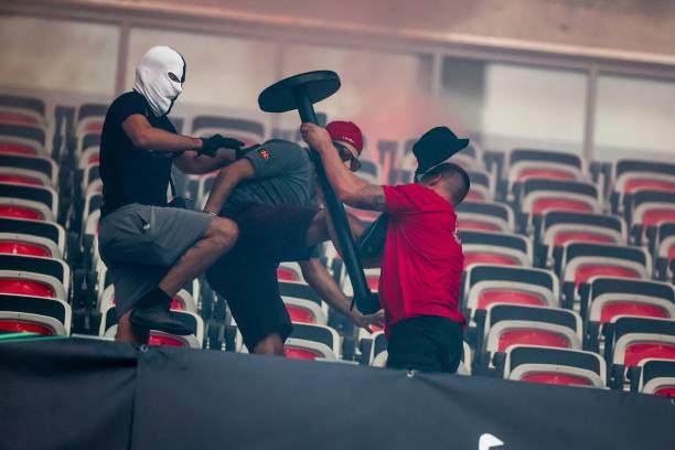 科隆球迷接近看台入口时,保安开始内外承压,入口里面的尼斯球迷都想冲出来开战。有个别尼斯球迷率先冲出来,遭到科隆球迷暴揍,但战局立即改观,更多尼斯球迷强行冲出,立即冲乱了科隆球迷的阵型,后面的球迷也赶紧撤退。